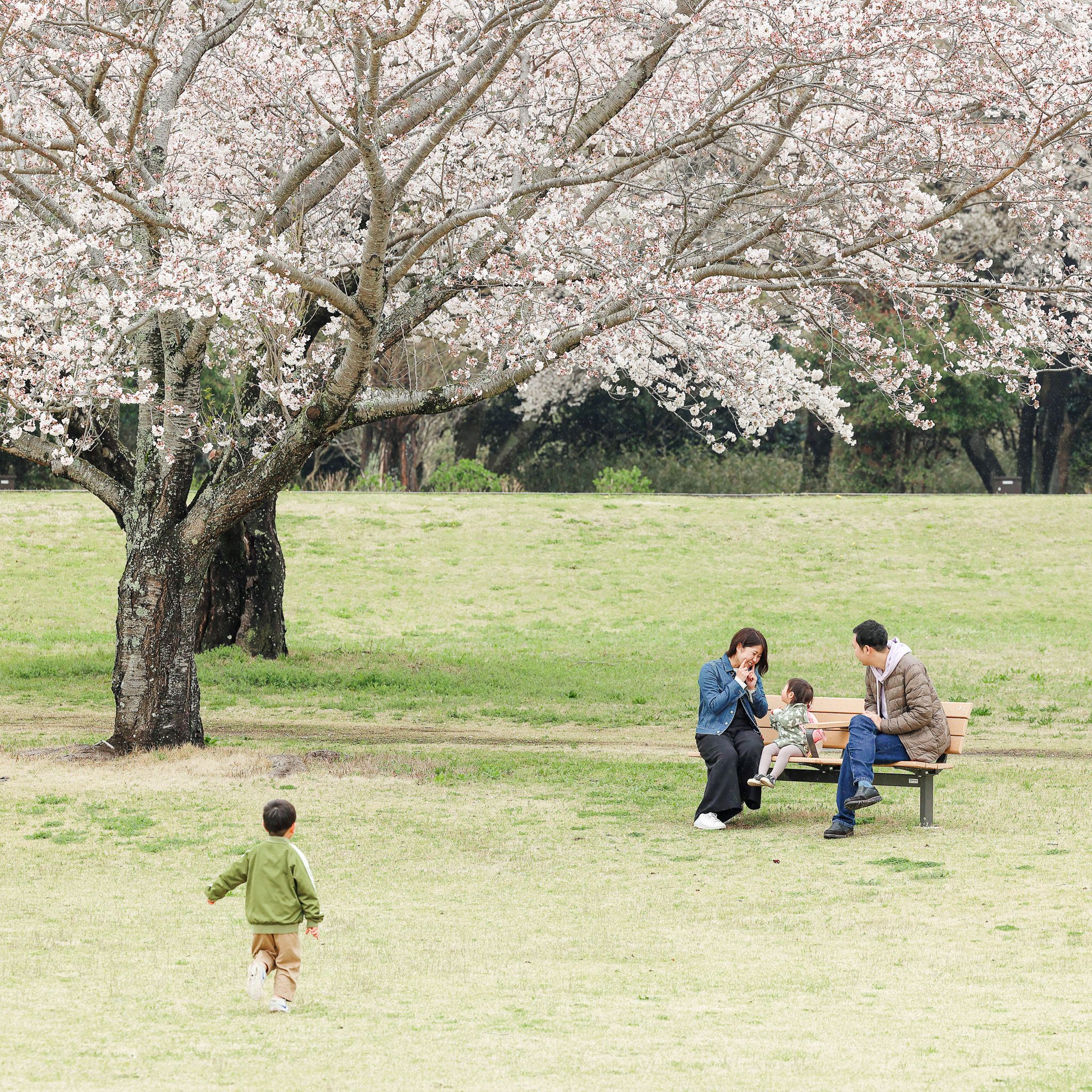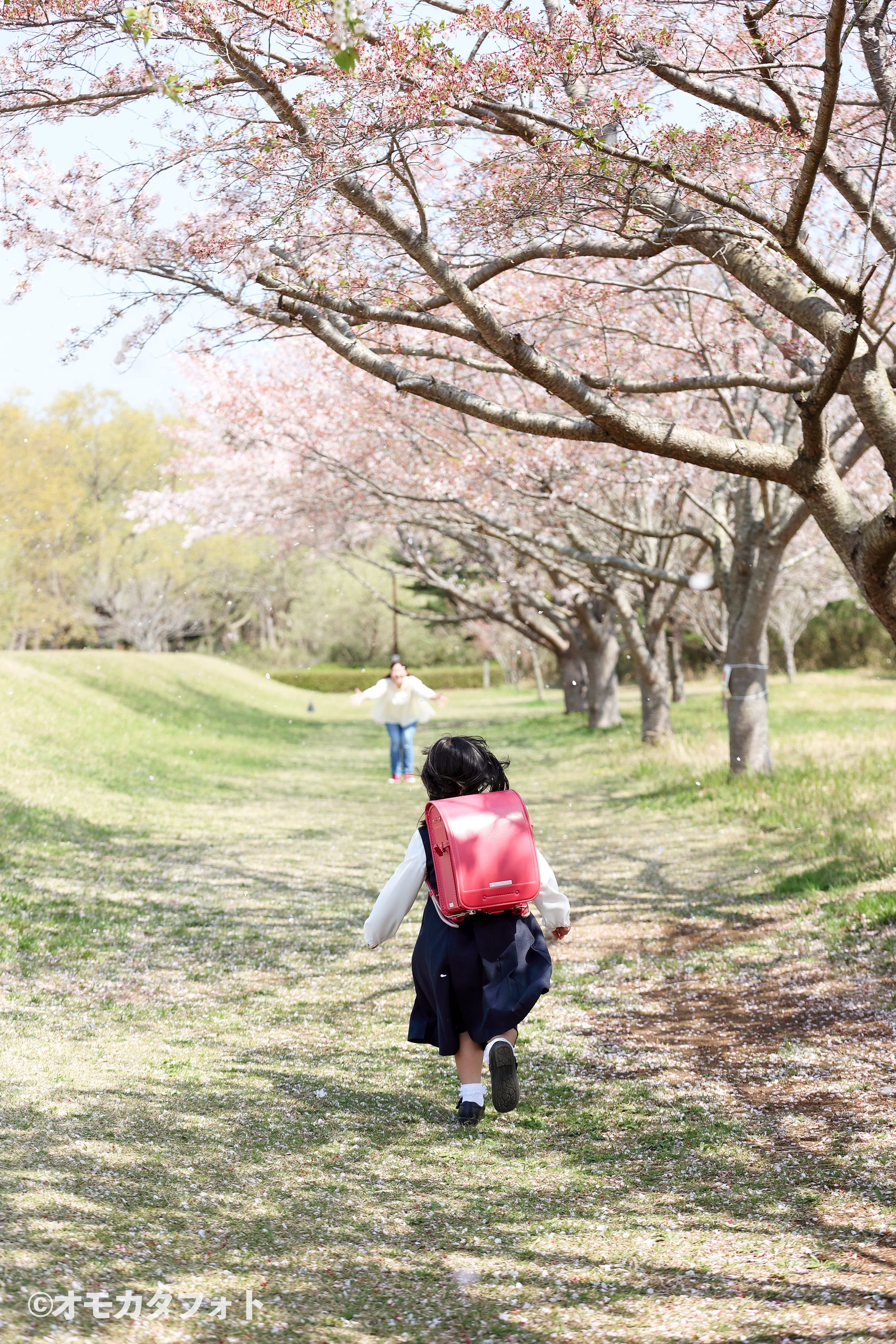 文化の森では、土手になっている場所もございます。小さなお子様でも背景に満開を楽しめる撮影イベントになります。